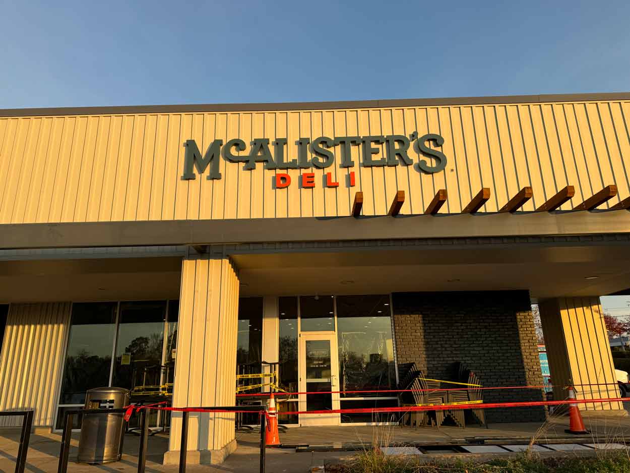 For MacAllister’s Deli in Springfield, VA, we installed a full plumbing system in an empty shell building. The scope included complete kitchen equipment installation, rooftop units, and public restrooms, delivering a turnkey solution for the restaurant.